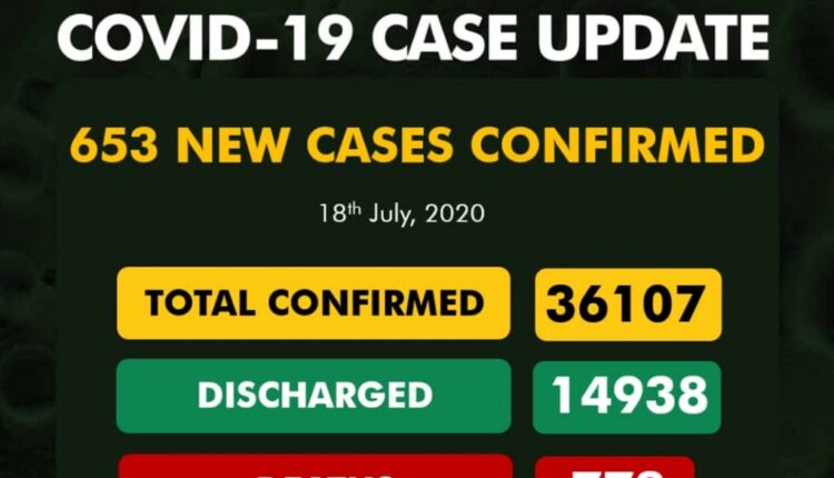 Nigeria has recorded 653 fresh cases of Covid-19 on Saturday, bringing the total number of reported cases in the country to 36, 107