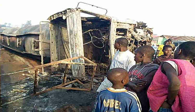 It was learnt that the tanker, which was loaded with Premium Motor Spirit, exploded after crashing with a trailer.
