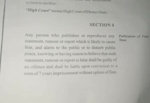 According to section 4 of the Ebonyi State Cyber Crime Law 012 of 2021, Mr Chikwere will face 7 years imprisonment for allegedly sharing hate speech, and fake news.