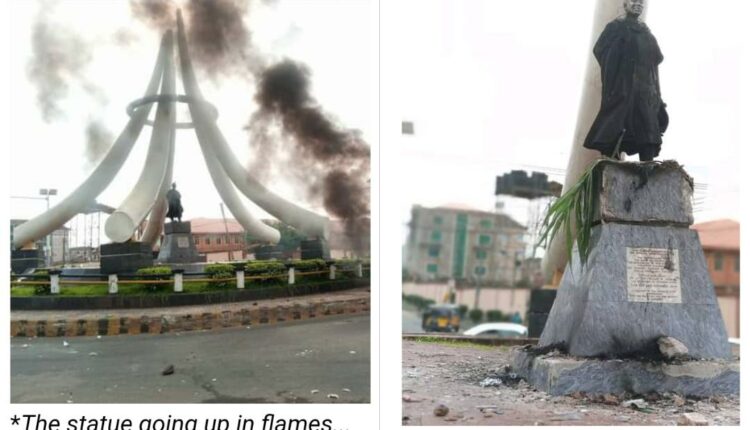 Protesters in Onitsha, in Anambra State, suspected to be hoodlums, have destroyed the statue of Nigeria’s first president Dr. Nnamdi Azikiwe, erected in the city.