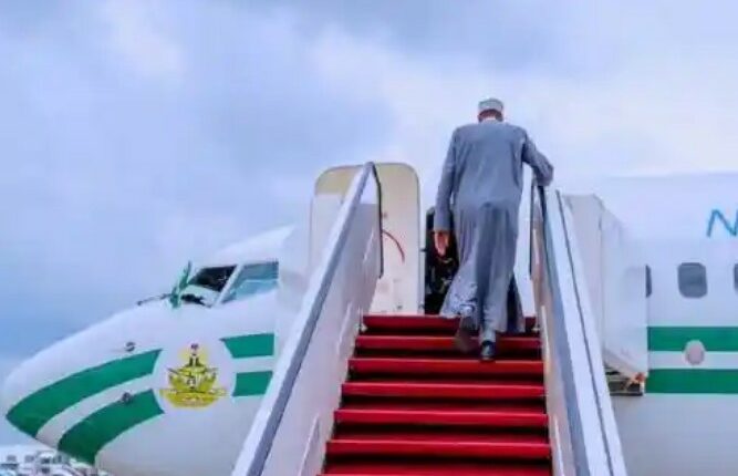 “The Presidential Boeing Business Jet registration number 5N-FGT developed a fault during his trip from New York. He travelled to Saudi Arabia with a smaller jet. A Falcon 7X jet with registration number 5N-FGV. No picture of his departure to Saudi Arabia was released to avoid the public knowing about the jet he travelled with,” a presidential source had told Reporters.