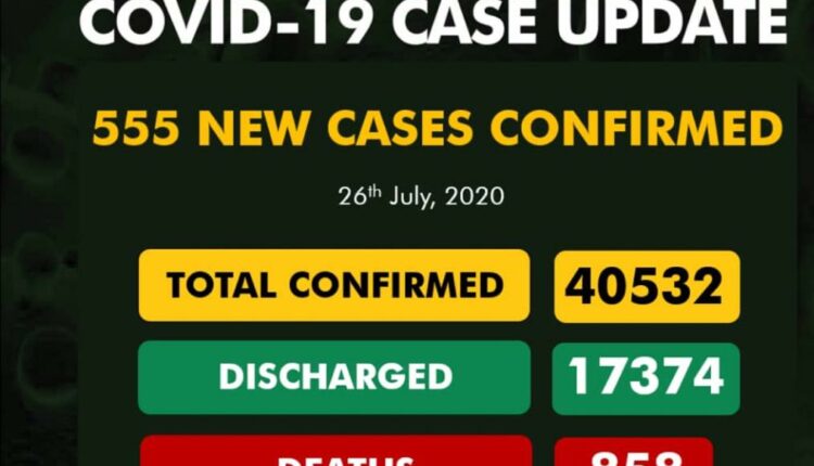 Nigeria has recorded 555 fresh cases of Covid-19 on Sunday bringing total number of reported cases to 40, 532.