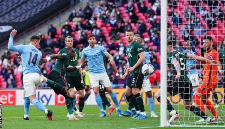 City defender Aymeric Laporte, arguably fortunate to be on the pitch after escaping a yellow card in the first half before being cautioned after the break, rose above Spurs substitute Moussa Sissoko to head home Kevin de Bruyne’s free-kick eight minutes from time.