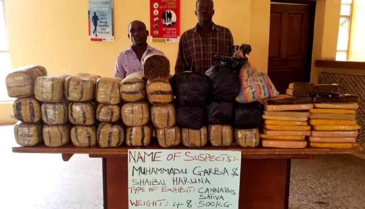 Few days after Godiya’s arrest, another dealer, Emmanuel Ishiwu was nabbed with different quantities of tramadol, exol-5 and diazepam, totalling 6.103kg also in Numan on 14th July, followed by the arrest of Muhammadu Garba and Shaibu Haruna with 48.500kg of cannabis in Gurin area of the state on Friday, 16th July 2021.