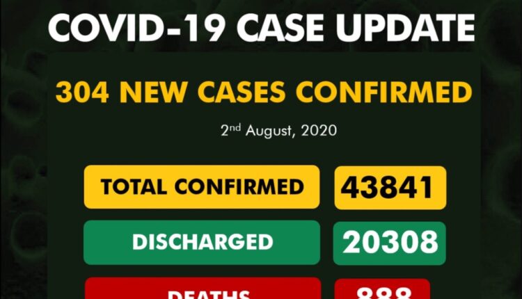 Nigeria has recorded 304 fresh cases of Covid-19 on Sunday bringing the total number of reported cases to 43, 841.