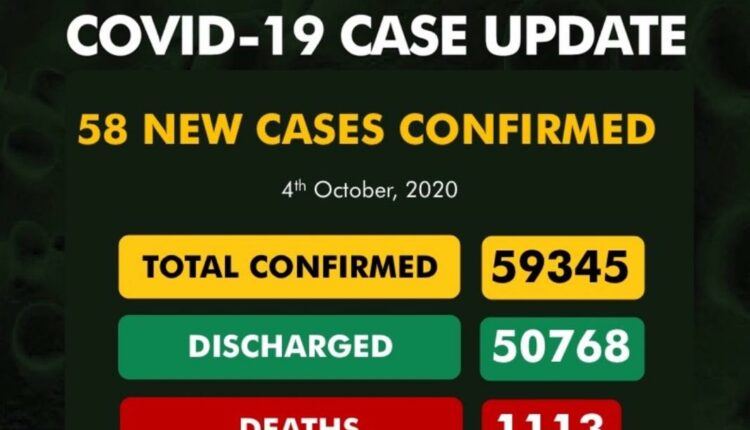 The Nigeria Centre for Disease Control (NCDC) has announced a total of 58 new COVID-19 infections in the country, the least to be recorded in several months.