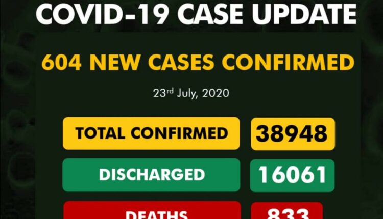 Nigeria has recorded 604 fresh cases of Covid-19 on Thursday bringing total number of reported cases to 38, 948.