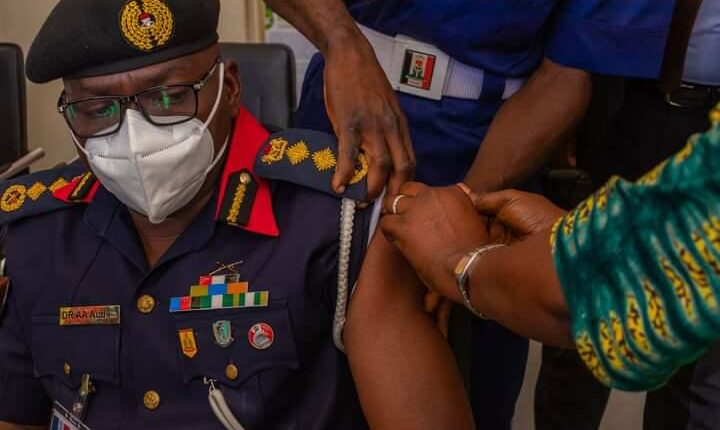 Officers of the Nigeria Security and Civil Defence Corps (NSCDC) have started to get their first jab of the COVID-19 vaccine.