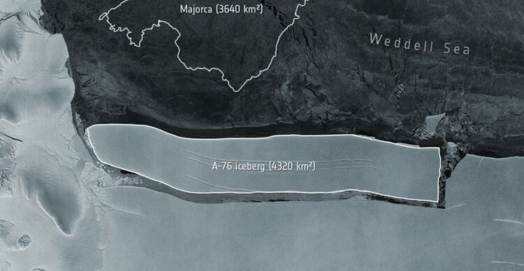 According to the European Space Agency\, the iceberg, known as A-76, measuring around 4,320 square kilometres in size, is currently the largest in the world.