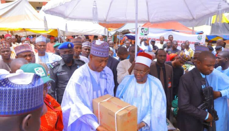The VSF at an occasion, which has the Governor, Prof. Babagana Zulum and the Shehu of Borno, Alhaji Garbai El-Kanemi in attendance, presented economic empowerment packages to some of the 61 families.